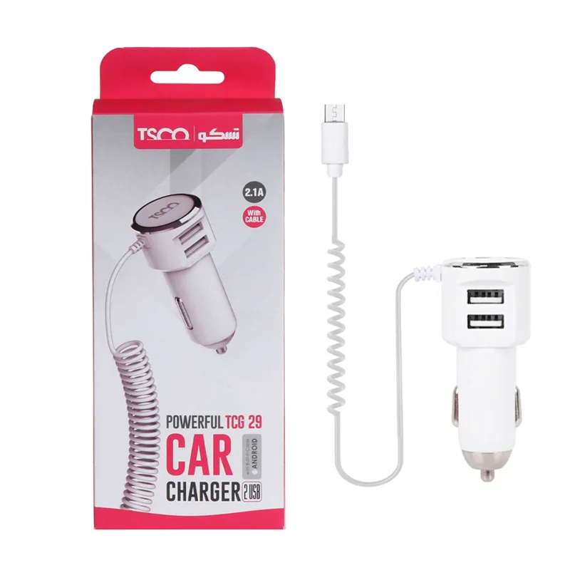 دارای دو پورت USB به همراه یک کابل فنری میکرو USB متصل به شارژر فندکی